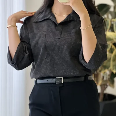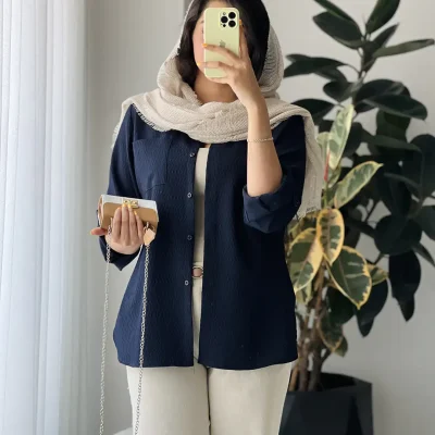 شومیز مانتویی مدل روژان جنس لنین وال اسلپ مدل کد 754