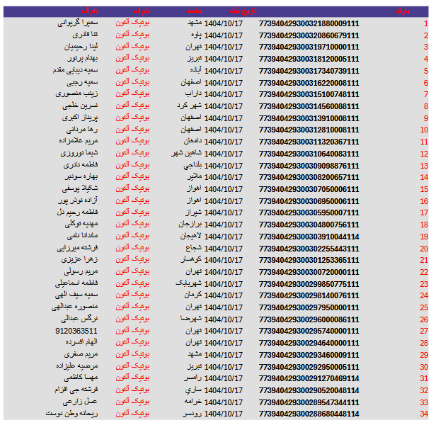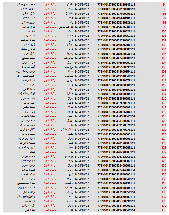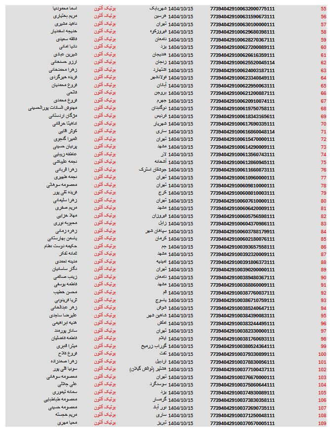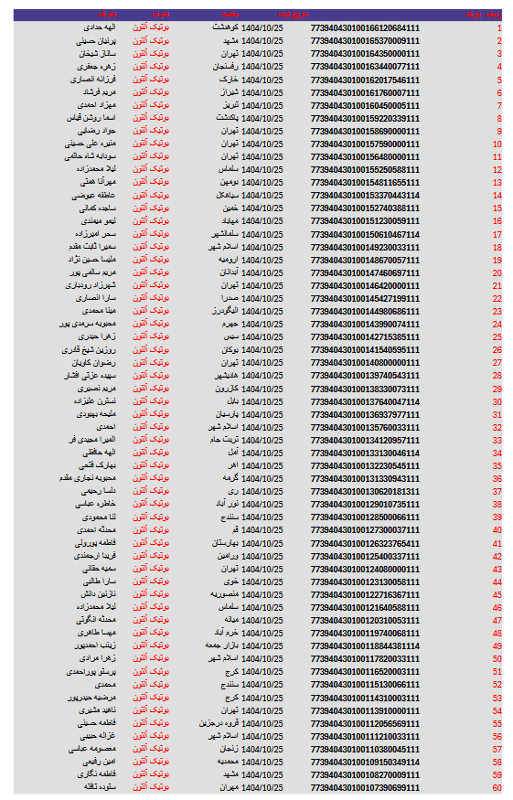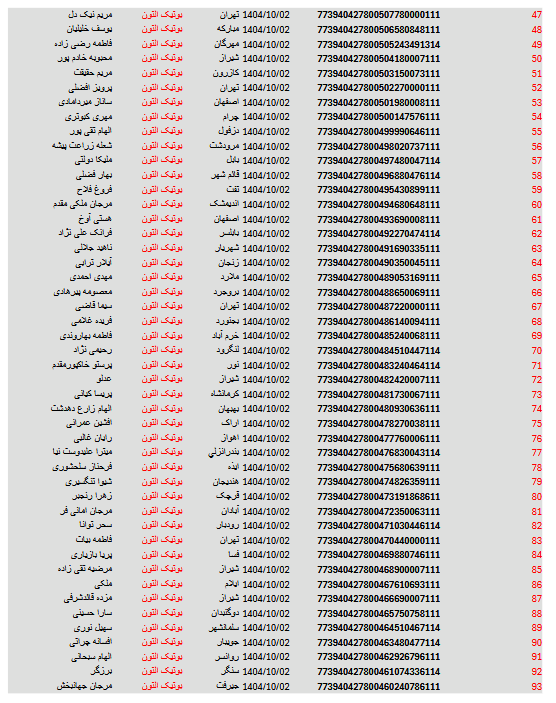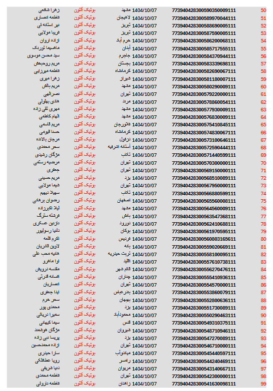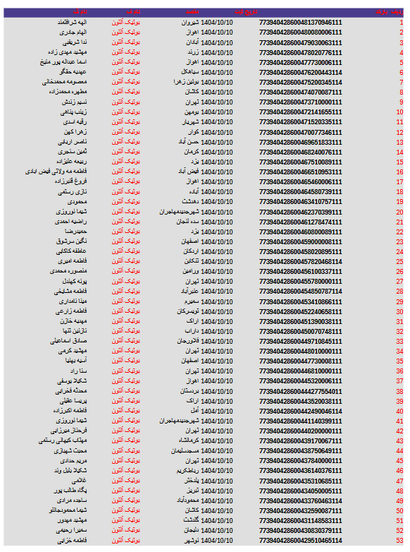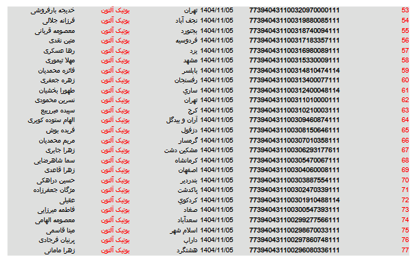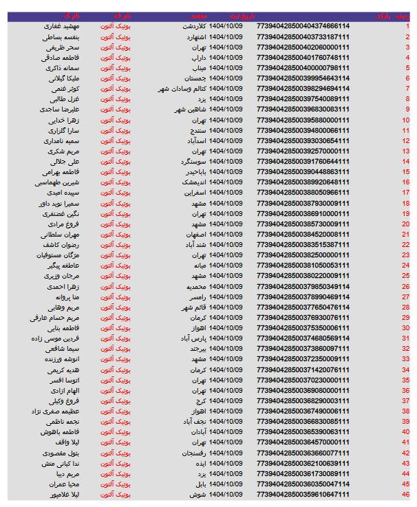 کد خود را از لیست پیدا کرده و در سامانه وارد نمایید