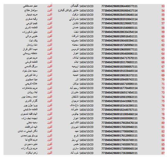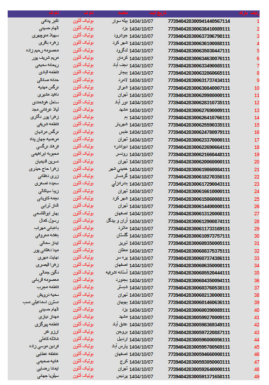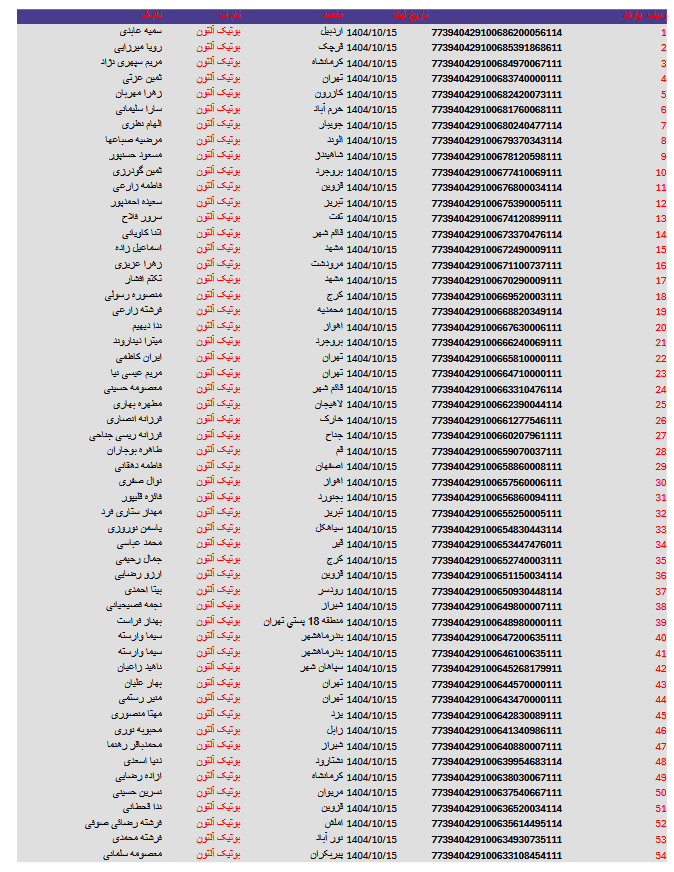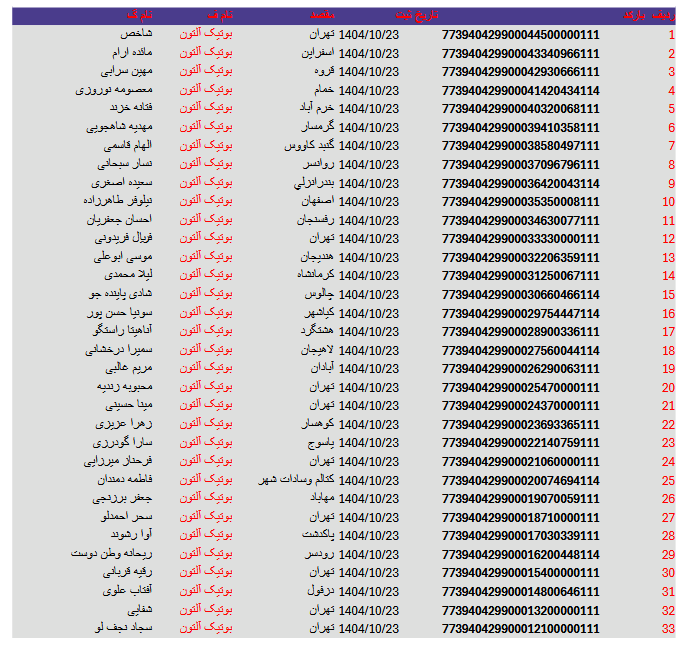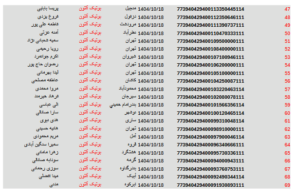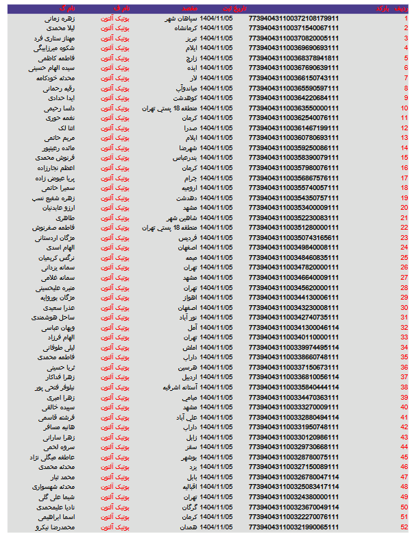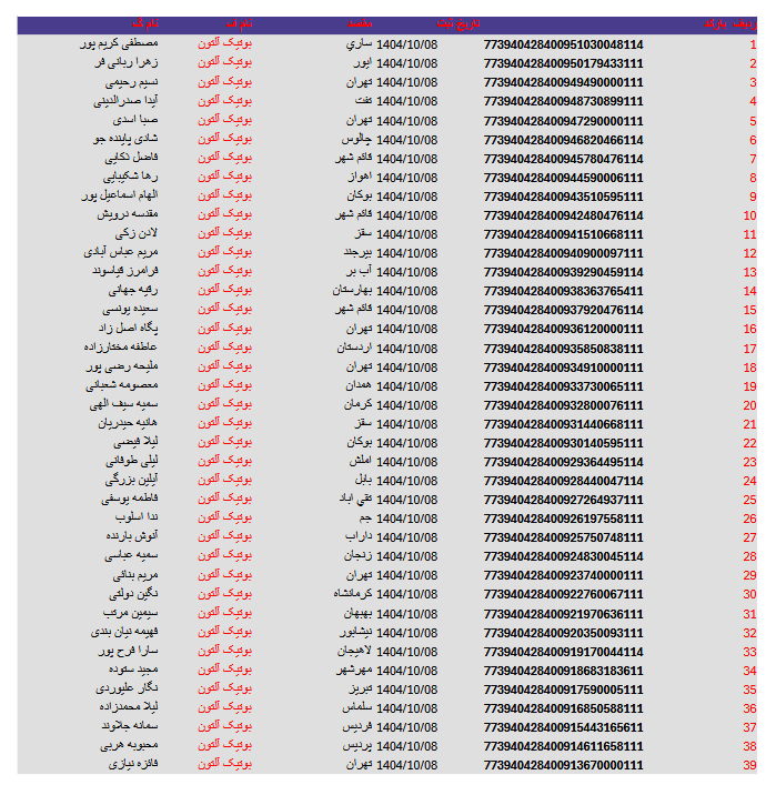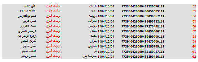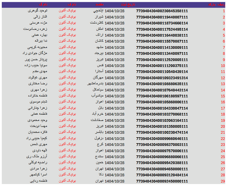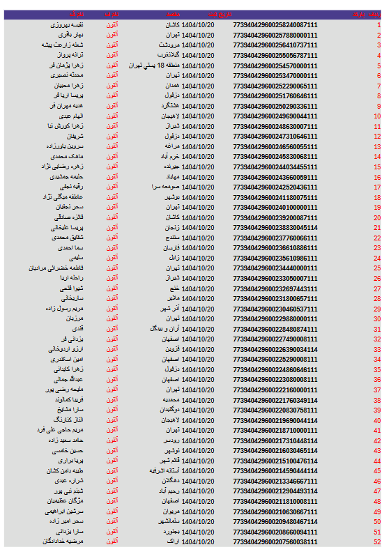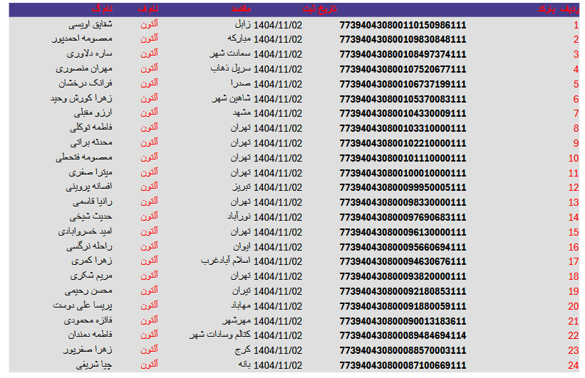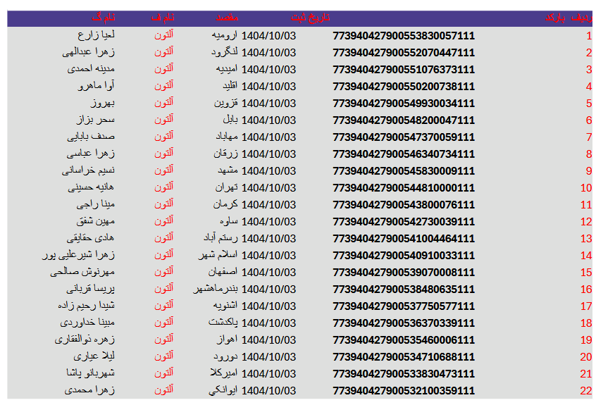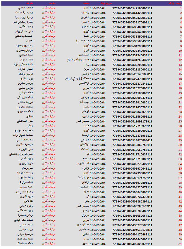 لیست کدهای رهگیری فروشگاه آلتون در سال 1404