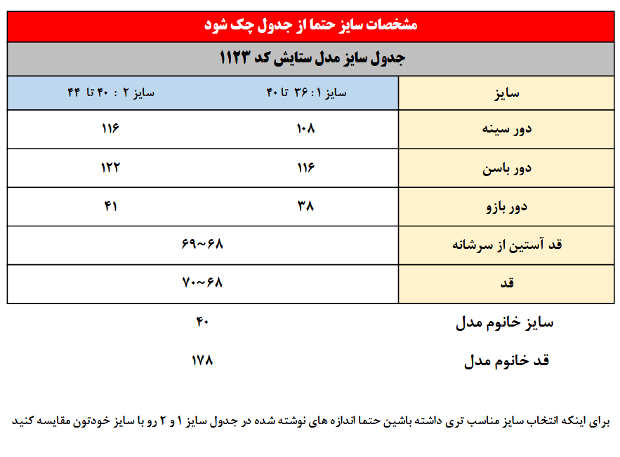 سایز خانوم مدل : 178