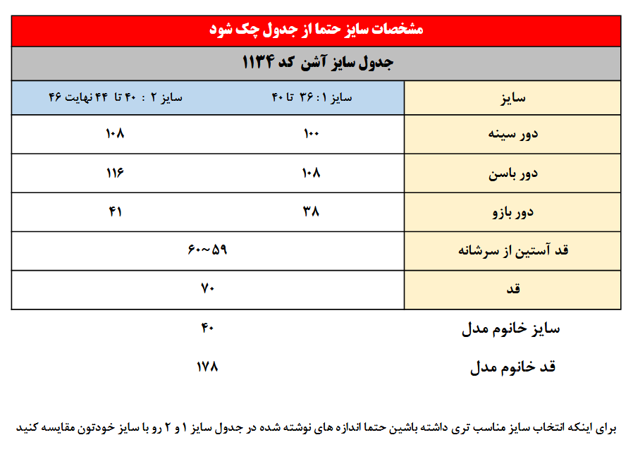سایز دو ۴۰،۴۲،۴۴ نهایت ۴۶