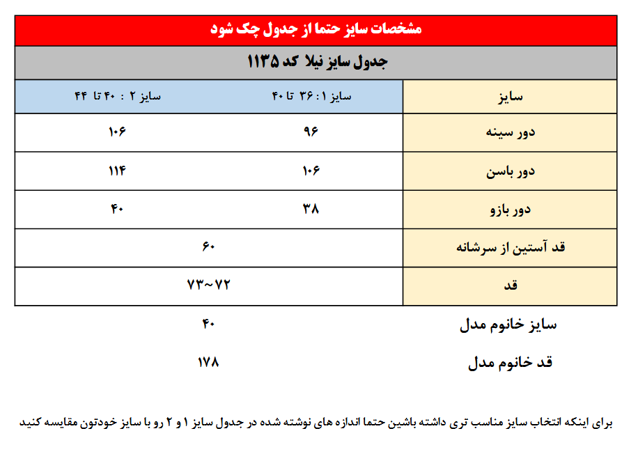 سایز خانوم مدل : 178