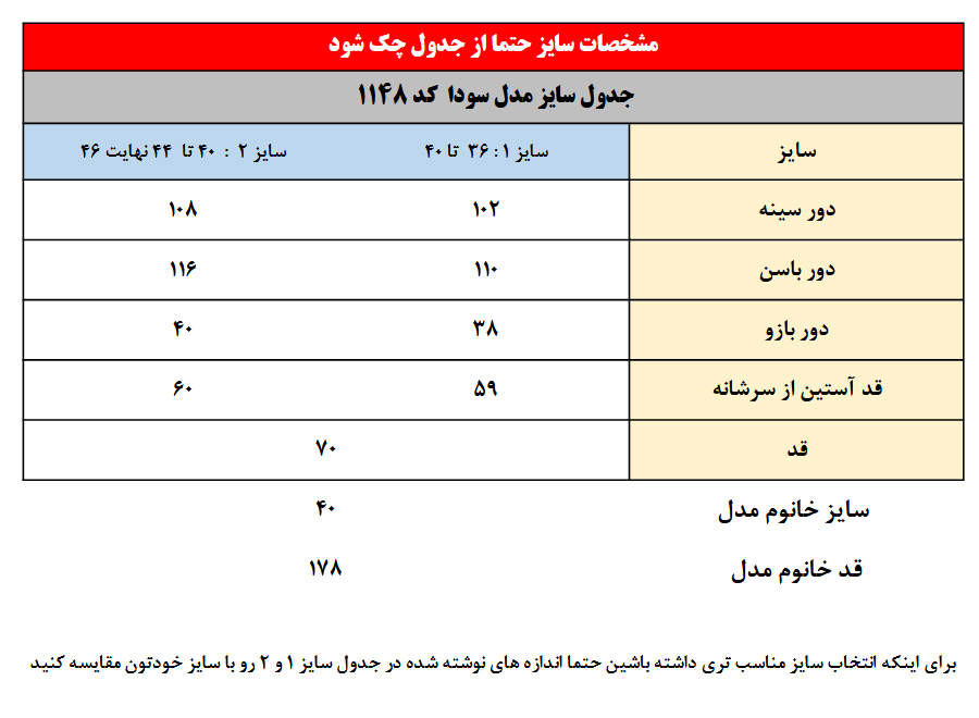 سایز خانوم مدل : 178