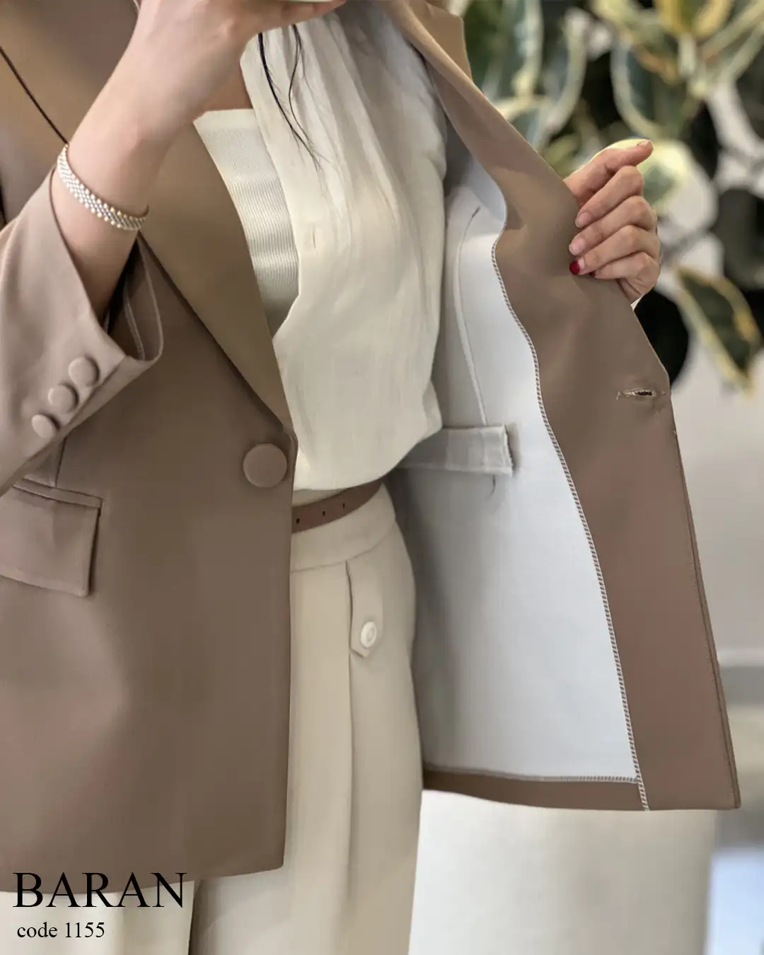 سبک کار کتی یقه انگلیسی ، تولید التون کیفیت دوخت و پارچه درجه یک ، پارچه کار مازراتی گرم بالا ۴ فصل کاربردی ، داخل کار برای ایستایی بهتر لایه کاری شده ، مدل کار کتی ساده یقه انگلیسی تک دگمه بسته میشه جلو کار پنس کاری شده اضافات گرفته شده پشت کار گودی کمر با پنس گرفته شده تا تن خور عالی داشته باشه