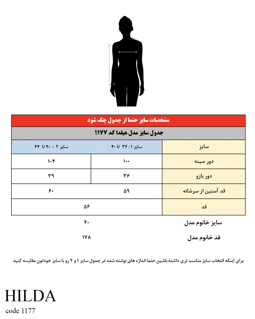 سایز خانوم مدل : 178