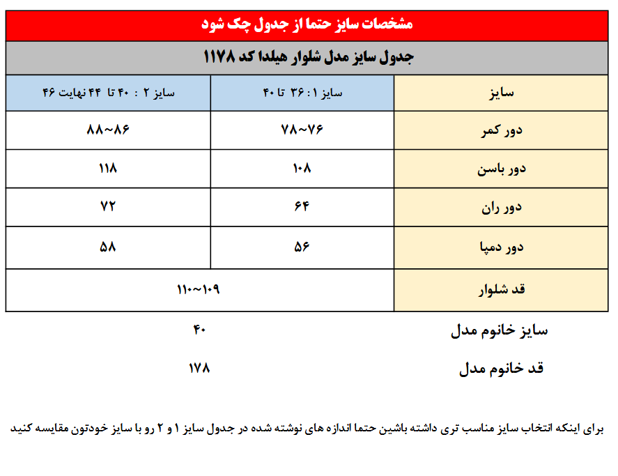 سایز دو ۴۰،۴۲،۴۴ نهایت ۴۶