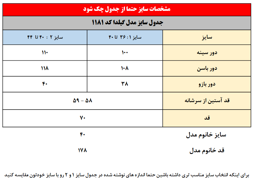 سایز خانوم مدل : 178