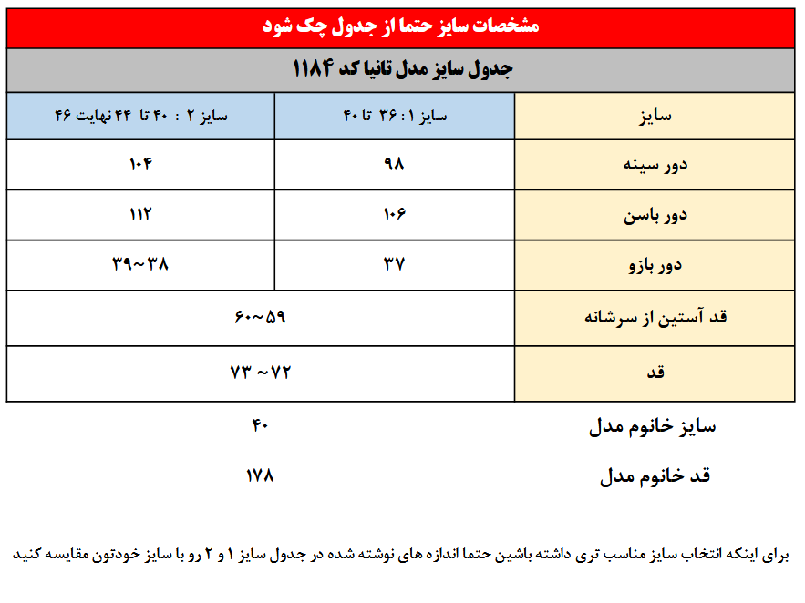 سایز خانوم مدل : 178