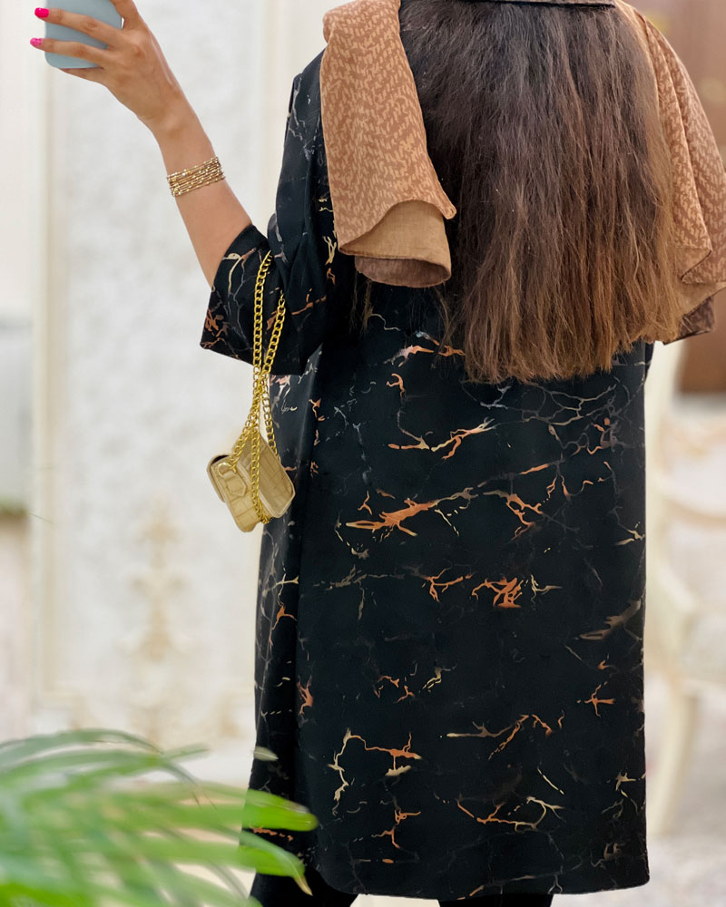 طرح 3 شومیز مانتویی مدل سویل جنس لنین طرحدار کد 573