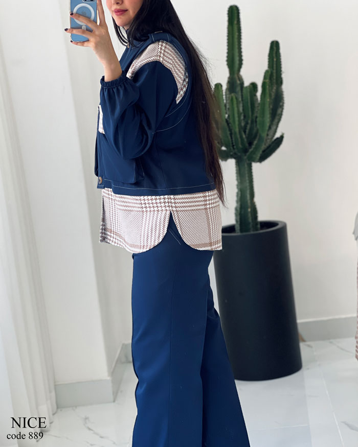 ست کتی با شلوار نایس کتان ترکیبی با توییت کد 889