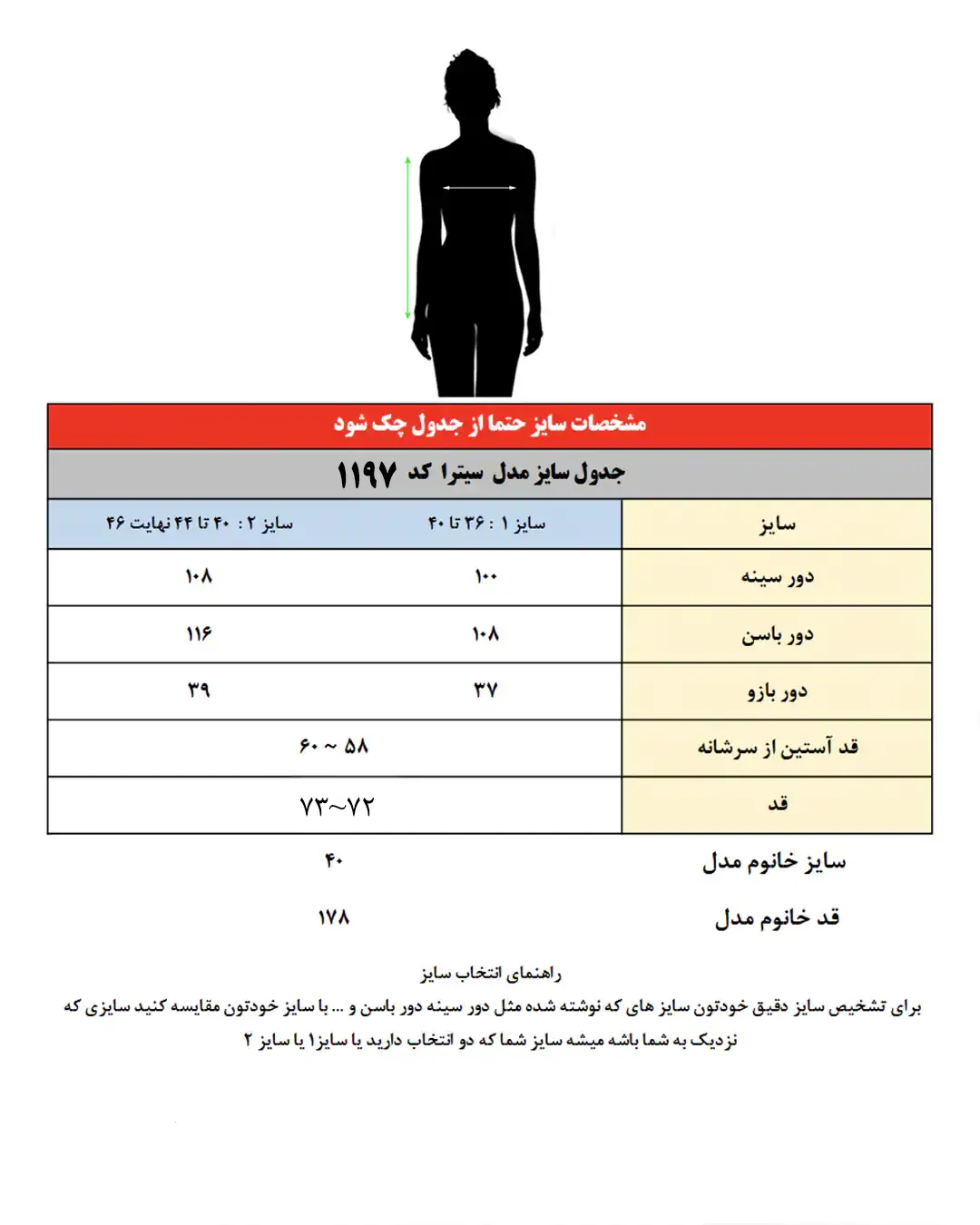 🔹 سایزبندی: سایز 1 (36 تا 40) | سایز 2 (40 تا 44 نهایت 46)