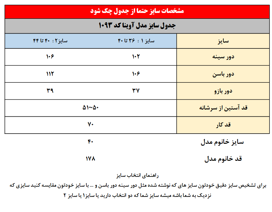 سایز خانوم مدل : 178